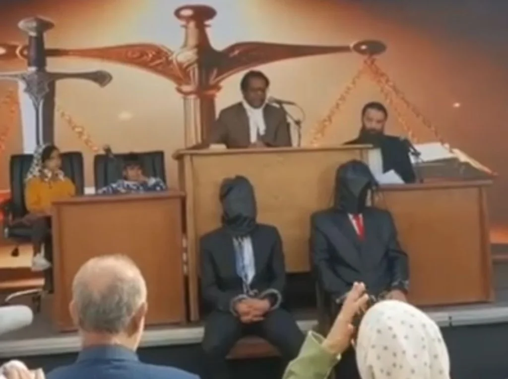 Шара барысында АҚШ-тың президенті Дональд Трамп пен Израиль премьер-министрі Биньямин Нетаньяхуды бейнелеген екі адам сахнада символикалық түрде “сотқа тартылып”, “айыпты” деп танылды.