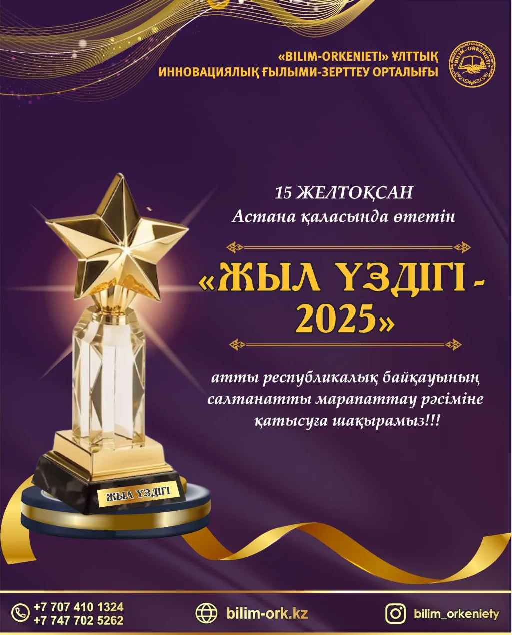«Жаңа Қазақстан» республикалық инновациялық орталығының ұйымдастыруымен өтетін «ЖЫЛ ҮЗДІГІ – 2025» атты республикалық патриоттық байқауына барлық сала өкілдерін қатысуға шақырамыз!
