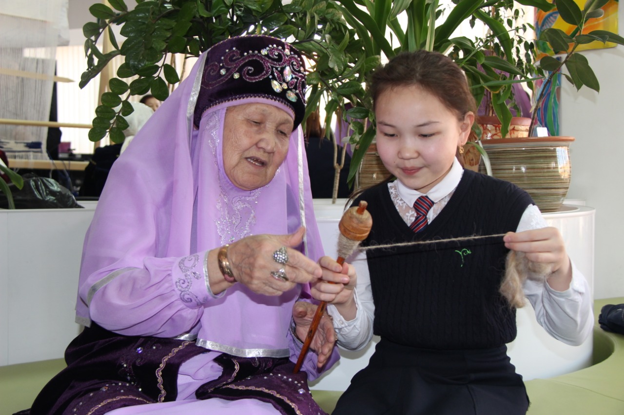 Заман көшіне біліммен ілесе отырып, ұлттық құндылықтарды үйрену – НЗМ оқушыларына қойылатын басты талаптың бірі. Осы мақсатта мектеп әкімшілігі «Ұрпақтар сабақтастығы» жобасын қолға алып, ұлттың ертеңгі буынын тәрбиелеуде. Мәселен, жоба аясында Раушан Қараева есімді әже киіз басудың қыр-сырын үйретсе, Манат Оразбекқызы оқушыларға ұршық иірудің жолын түсіндіріп келеді. Бар ізгілікті бойына жинаған Раушан әже қазір сексенге толса, Манат апаның жасы жетпіс үште. Әйтсе де жастайынан еңбекті жанына серік еткен әжелер жол жағдайына қарамастан қалаға келіп, бар білгенін оқушылармен бөлісуде. Ал білім мен өнерді ұштастырған мектеп оқушылары әжелерге компьютермен жұмыс істеуді үйретеді.