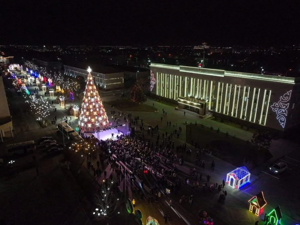 Жаңажылдық шырша шамын жағу құрметі облыс әкіміне және өнер, білім, спорт саласының үздіктеріне берілді.