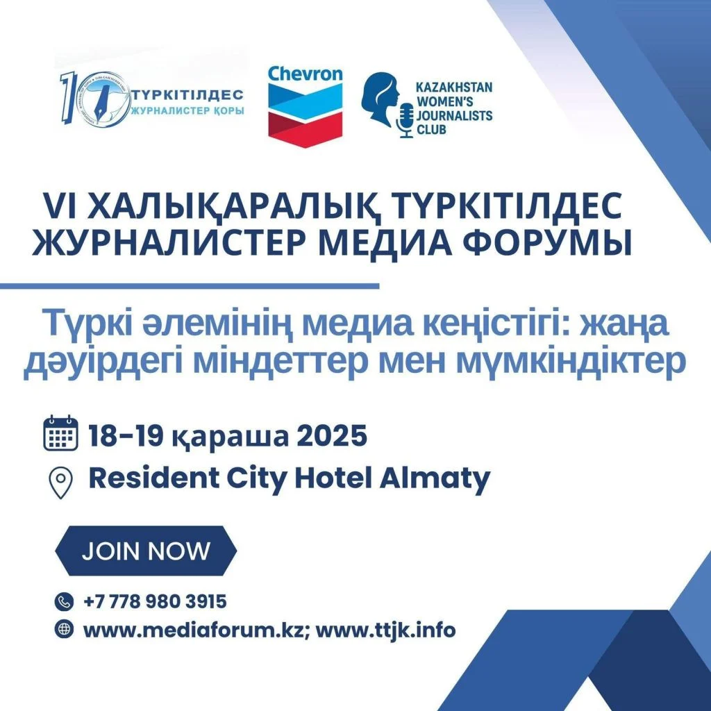 Түркітілдес журналистер қоры 2025 жылдың 18-19 қарашасында Алматыда «Түркі әлемінің медиа кеңістігі: жаңа дәуірдегі міндеттер мен мүмкіндіктер» тақырыбына VI Халықаралық түркітілдес журналистер медиа форумын ұйымдастырады.