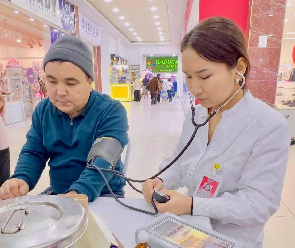 Іс-шара аясында №3 қалалық емхананың мамандары тұрғындарға қауіп факторлары мен ауруларды ерте кезеңде анықтау мақсатында тегін медициналық қызметтер көрсетті. Қала тұрғындары экспресс-тексеруден өтті. Атап айтқанда, дәрігерлер қан қысымын, бойы мен салмағын өлшеп, қандағы қант пен холестерин деңгейін анықтады, сондай-ақ салауатты өмір салтын ұстану бойынша кеңес берді.