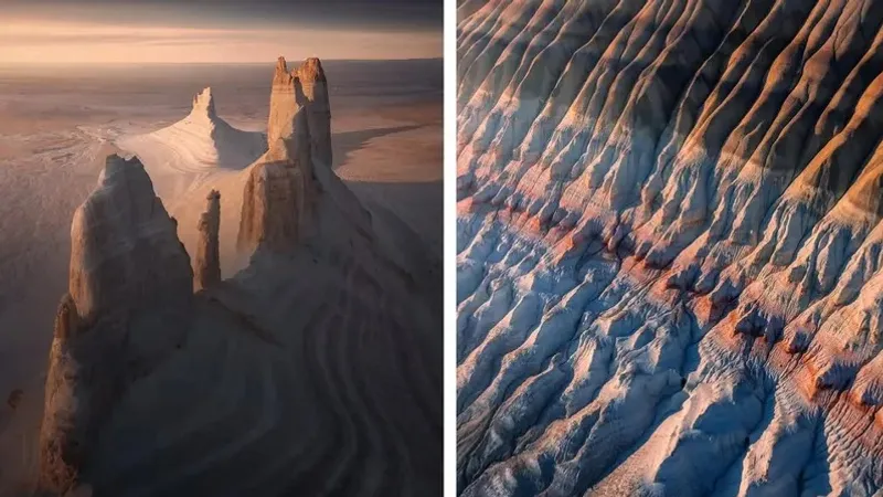 «Қазақстанның сюрреалистік пейзаждары. Бұл керемет аймақ теңіз деңгейінен 70 м/230 фут төменде орналасқан», деп жазды сурет астына фотограф.