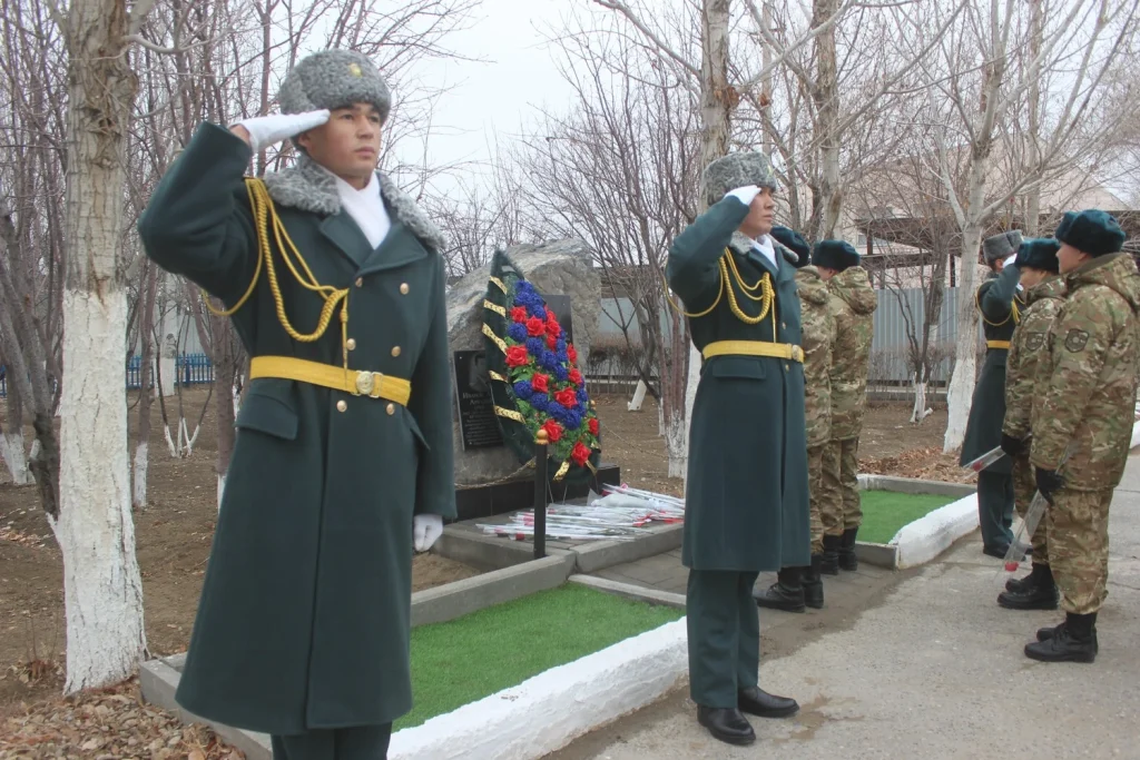 ҚР ҰҚК Шекара қызметі Қызылорда облысы бойынша департаментінің ұйымдастыруымен 25 желтоқсан күні әуе апатынан қаза тапқан шекарашыларды еске алу мақсатында гүл шоқтарын қою рәсімі өтті.