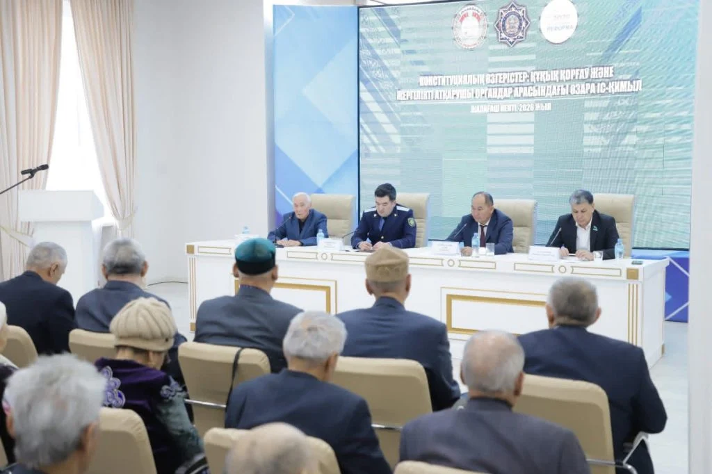 Қазақстан Республикасы Конституциясының жаңа жобасын ақпараттық қолдау мақсатында «Конституциялық өзгерістер: құқық қорғау және жергілікті атқарушы органдар арасындағы өзара іс-қимыл» тақырыбында аудан ардагерлерімен кездесу ұйымдастырылды.