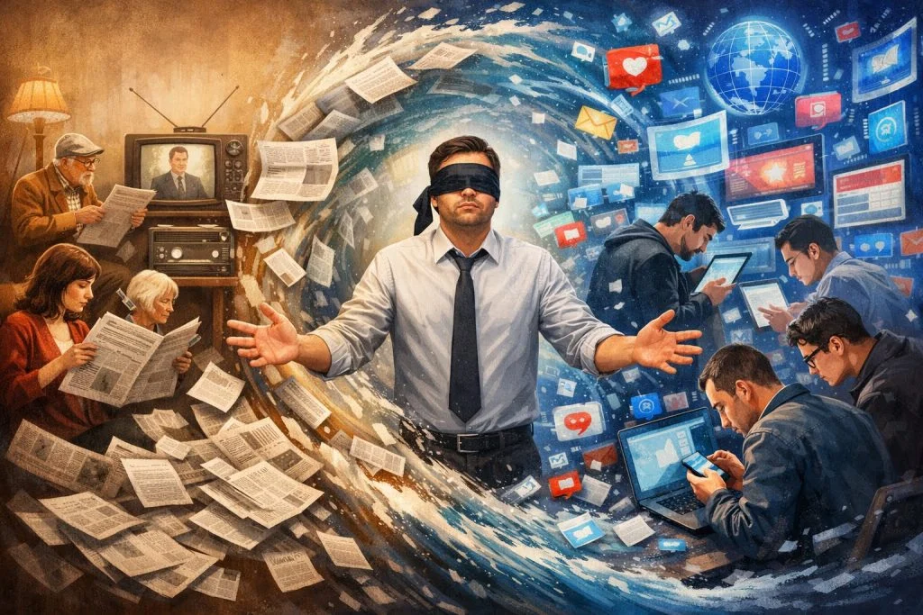 «Бұрынғы өткен заманда» (1960-90 жылдары) ақпарат көздері өте аз еді. Ал бүгінде біз басқа уақытты бастан кешудеміз. Қазіргі заманның ең басты ерекшелігі, керісінше, ақпараттың тым көптігінде.