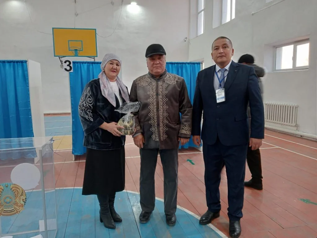 40 жыл отасқан үлгілі жұп референдум учаскесіне ұлттық киіммен келіп, саяси науқанға қатысып, кейінгі ұрпаққа өнеге көрсетті.