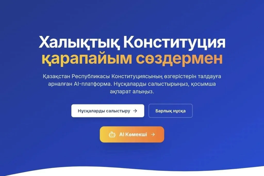 Елімізде «Халықтық Конституция қарапайым сөздермен» деп аталатын цифрлық платформа іске қосылды. Жобаны «AMANAT» партиясы фракциясының мүшесі, Мәжіліс депутаты Әбутәліп Мүтәлі таныстырды. Бұл – Қазақстан Республикасы Конституциясындағы өзгерістерді түсінуге және негізгі заңның әртүрлі редакцияларын салыстыруға көмектесетін чат-боты бар AI-сервис.