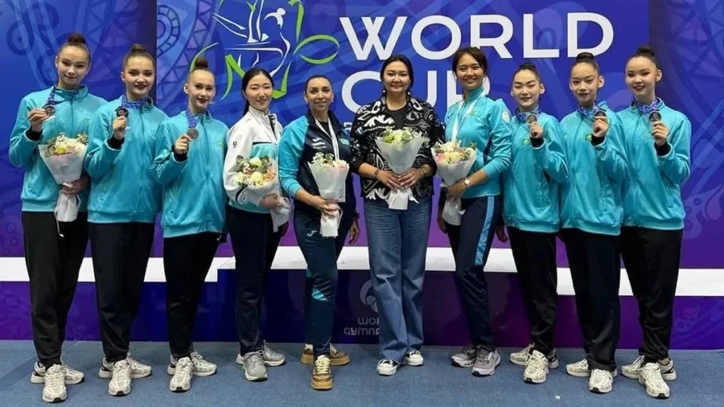 Топтық жаттығуларда спортшыларымыз күміс медальға қол жеткізді. Көпсайыс қорытындысы бойынша Қазақстан құрамасы 51,25 ұпай жинады. Ел намысын Айзере Нұрмағамбетова, Айзере Кеңес, Кристина Чепульская, Аида Хәкімжанова, Жасмин Жүнісбаева және Мадина Мырзабай қорғады.