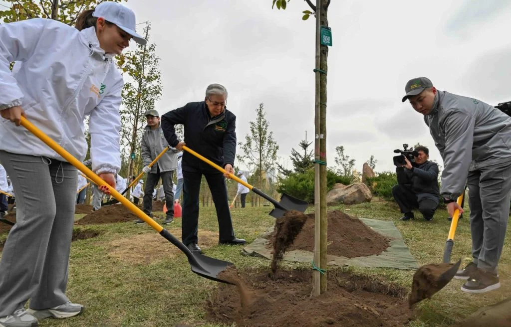 Президент Астана қаласындағы Ботаникалық саябақта ерікті және белсенді жастармен бірге ағаш екті. Жалпыұлттық іс-шара аясында биыл республика аумағында 2,4 миллионға жуық көшет отырғызылған.
