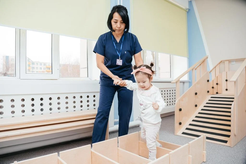 Жыл сайын 3 жасқа дейінгі 600 баланы қабылдайтын орталықта әрбір балаға жеке оңалту жоспары әзірленеді. Мұның бәрі түрлі ақаулармен туылған балалардың өсіп-жетілуі мен дамуын жетілдіруге, өздігінен жүріп-тұруы мен сөйлеуіне мүмкіндік береді. Олармен невропатологтар, реабилитологтар, педиатрлар, травматолог-ортопедтер, психологтар, физиотерапия нұсқаушылары, дефектологтар мен логопедтер жұмыс істейді. Мекеме заманауи технологиялармен, арнайы техникалық жабдықтармен, тренажерлармен және аппараттық-бағдарламалық кешендермен толық жарақталған.